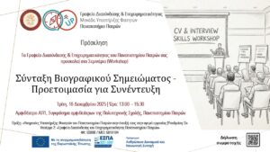 «Σύνταξη Βιογραφικού Σημειώματος & Συνοδευτικής Επιστολής / Προετοιμασία για τη διαδικασία των Συνεντεύξεων».